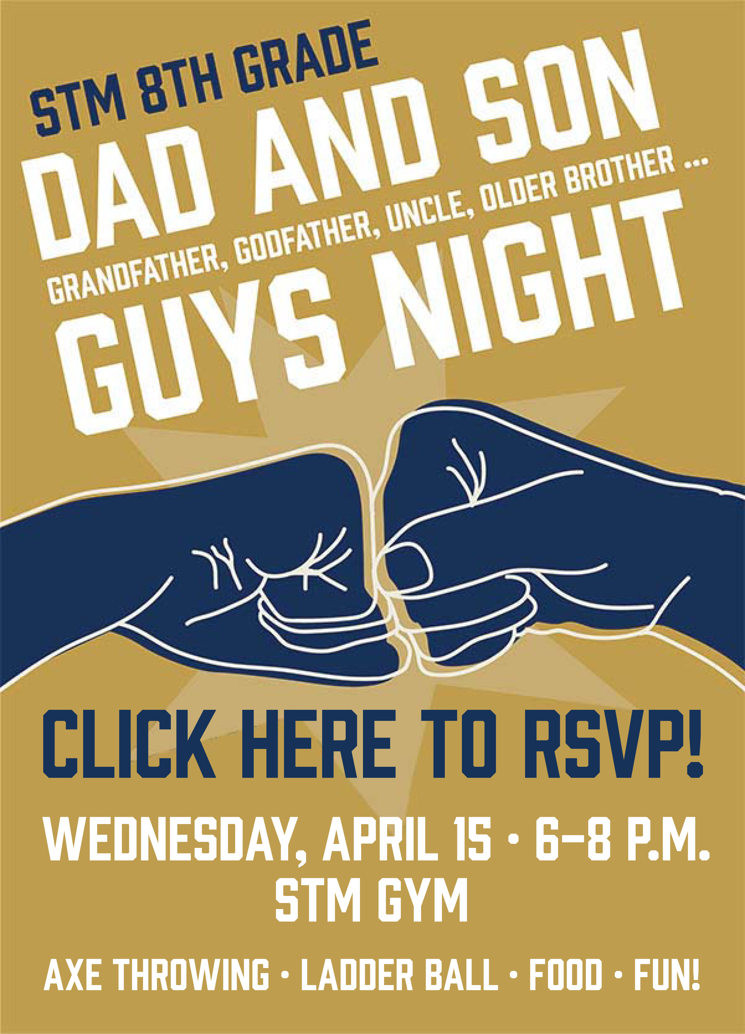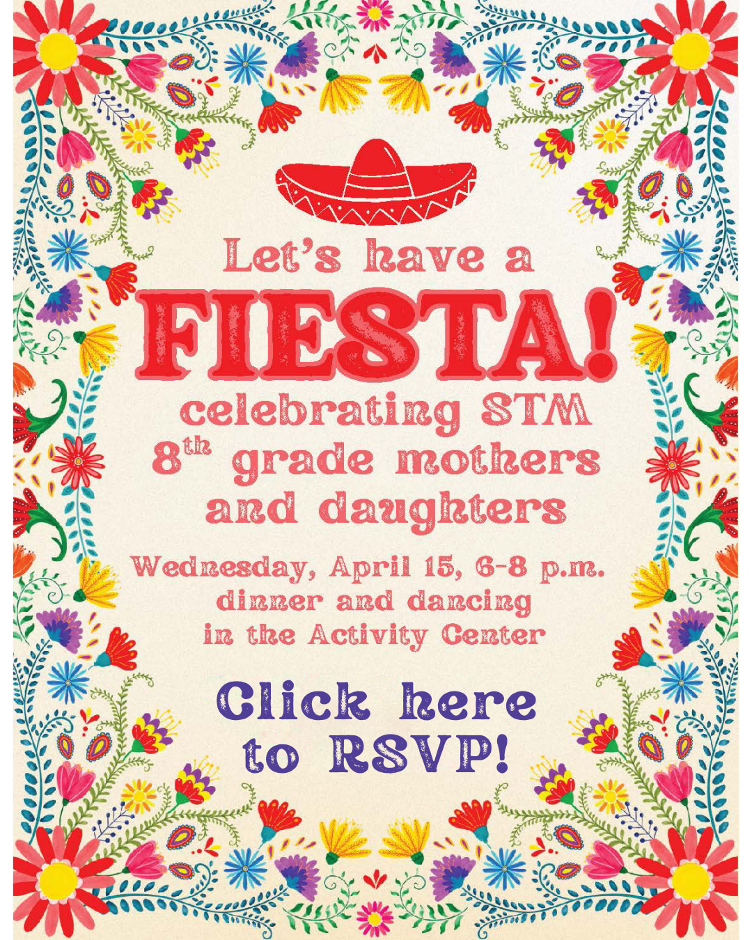 APRIL 15: 8th grade Mother & Daughter Fiesta and Dad & Son Game Night